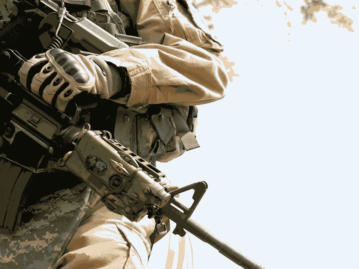 US soldier in camouflage uniform holding his rifle